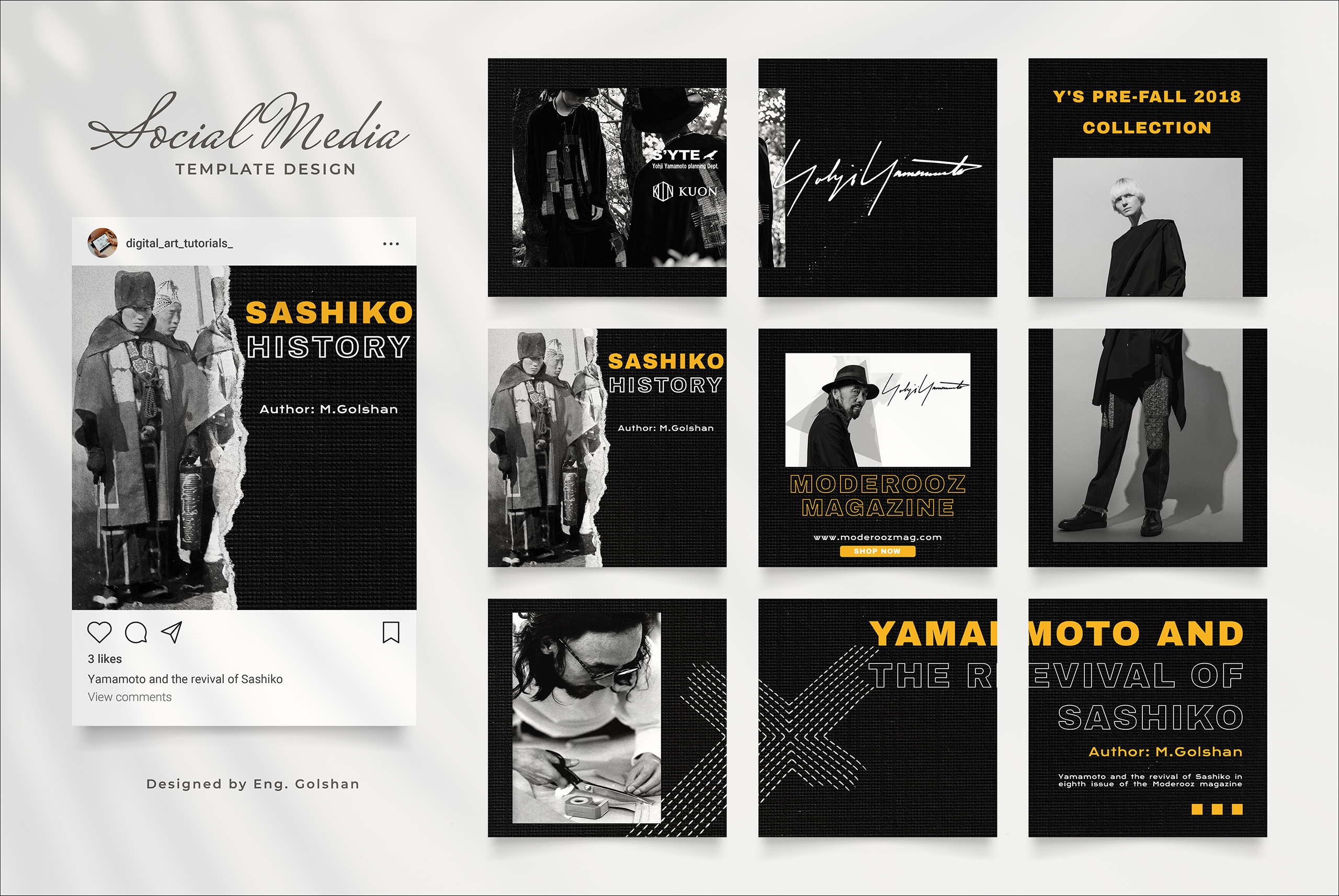 این پروژه با موضوع مقاله یاماموتو و احیا ساشیکو از مجله مُدروز، توسط مهندس مطهره گلشن برای پیچ آموزشهای هنر دیجیتال طراحی و اجرا شد.