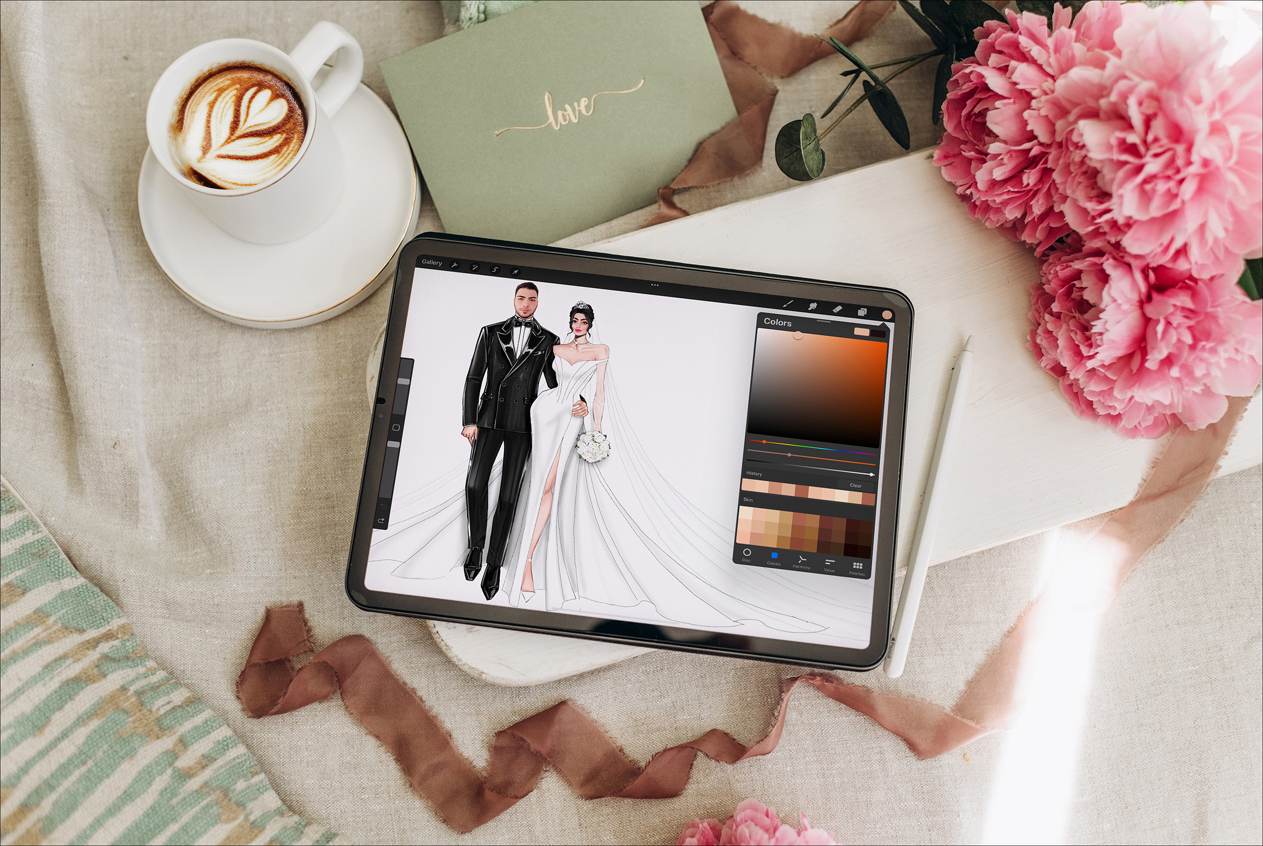 این طراحی دیجیتال از عروس و داماد که با دقت و هنر توسط مهندس مطهره گلشن خلق شده، لحظه‌ای خاص و زیبا را به شکلی ماندگار به تصویر کشیده است.